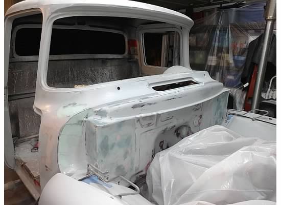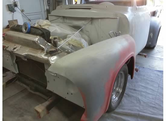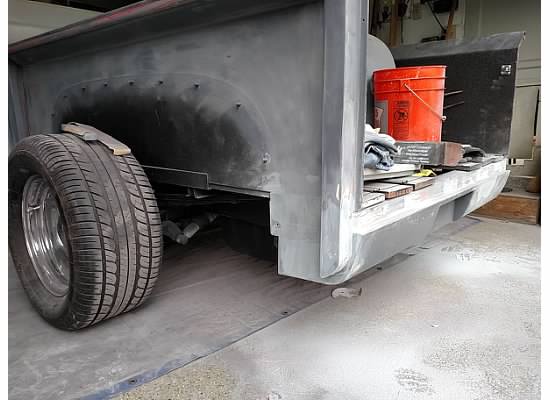 Here are some of the pics from the start. Like I said, I started this project with after widening my rear fenders 3 inches. I ran with them painted primer for two years before I figured I’d have the time to finish and paint them. The next things I knew the glass was coming out and the bed was off the truck. And that’s where things got interesting..