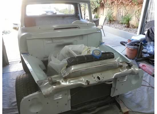 - Took out the gas tank and placed a mustang tank in the rear frame rails. I did the body work and this was after I painted it.