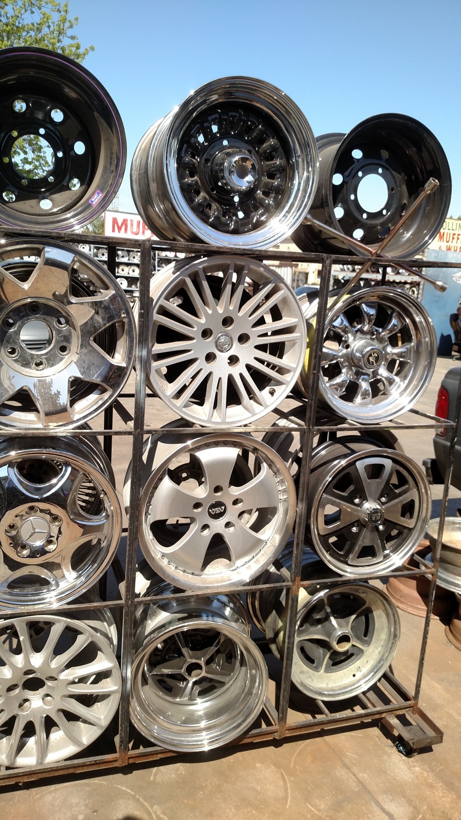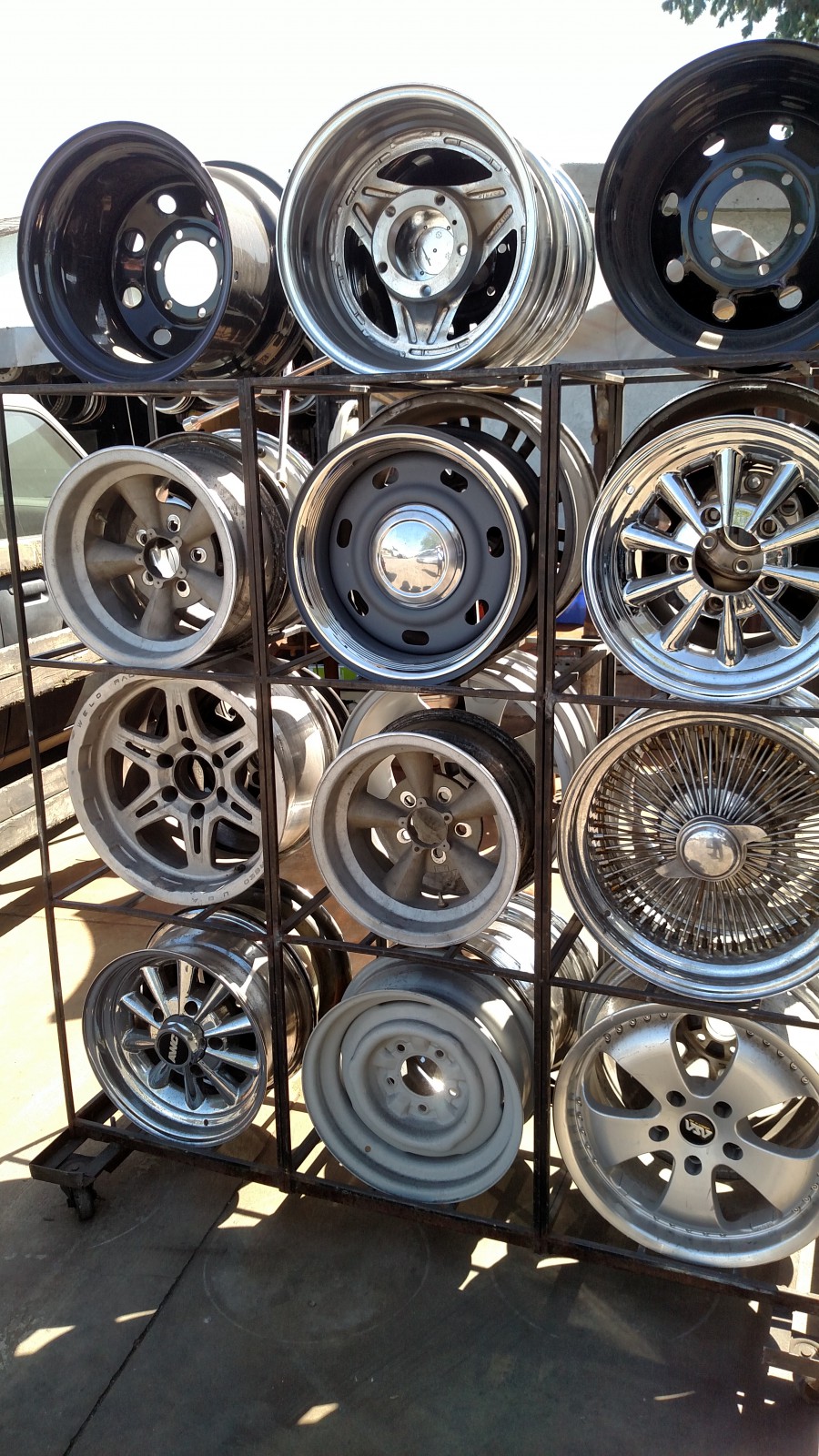 We met at the IHOP on Arrow Hwy and after a high cholesterol breakfast we threw drown some coin and Cruised to gate 15. The usual suspects were in line waiting to make the gate as some tried to cut between us but we try to stay tight but failed. Oh well, its just another day at Pomona. With sunscreen on we followed Dusty as he headed to our spot. Once parked the hoods go up and we head towards the swap area to fulfill our need for stuff.